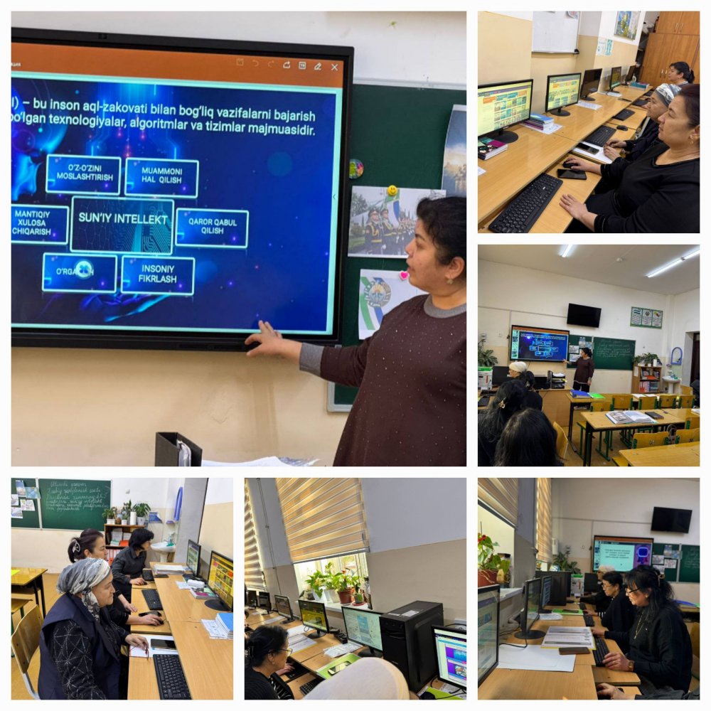 Мaktabimizda "Kasbiy rivojlanish soati" doirasida aniq fan o'qituvchilari ishtirokida KRS bo'yicha "Ta’limda sun’iy intellekt vositalaridan foydalanish" mavzusida mashg'uloti bo‘lib o'tdi